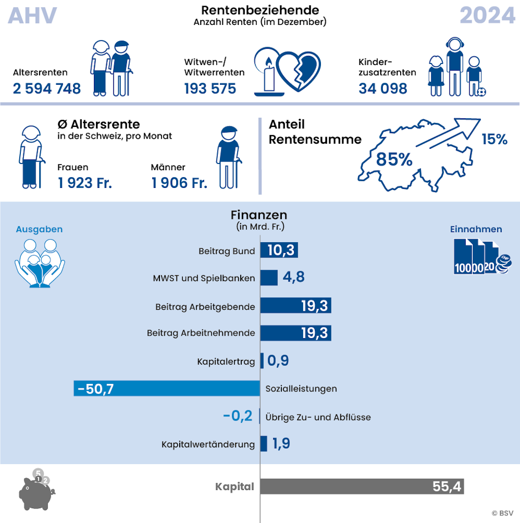 Die AHV-Statistik präsentiert einen jährlichen Überblick über die Leistungen und die Leistungsbeziehenden von Alters- und Hinterlassenenrenten. Sie gibt Auskunft über den Ist-Zustand der Versicherung sowie deren Struktur und Entwicklung. Sie präsentiert die einzelnen Komponenten der Versicherung hinsichtlich Leistungsbezug aus personeller und finanzieller Perspektive (Finanzhaushalt). Die AHV-Statistik bildet eine zentrale Grundlage für die Berichterstattung über das aktuelle System der Alterssicherung in der Schweiz.