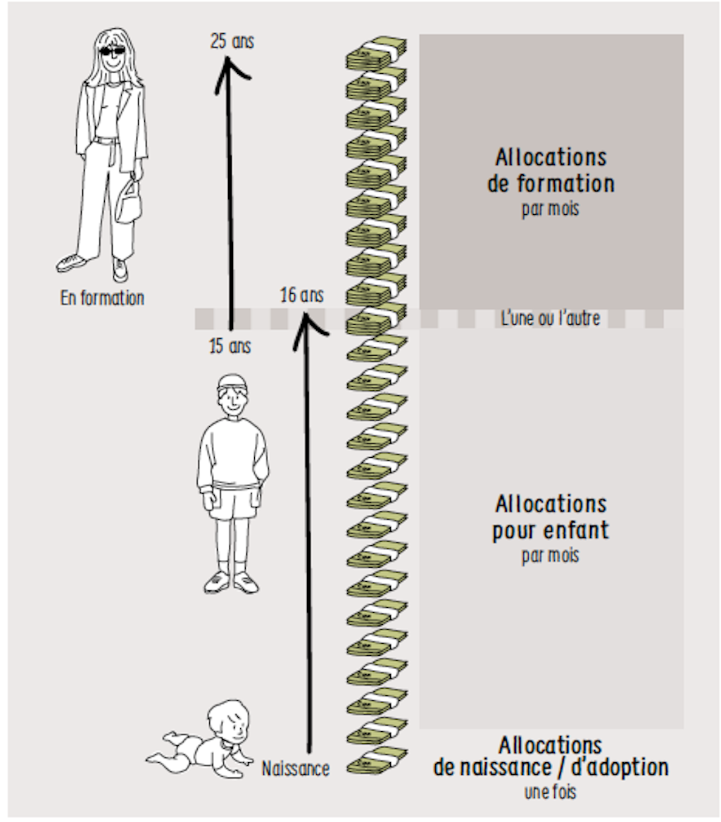 Les parents qui exercent une activité lucrative ont droit à des allocations familiales. Ce revenu supplémentaire vise à compenser en partie les coûts résultant de la prise en charge d’un enfant.