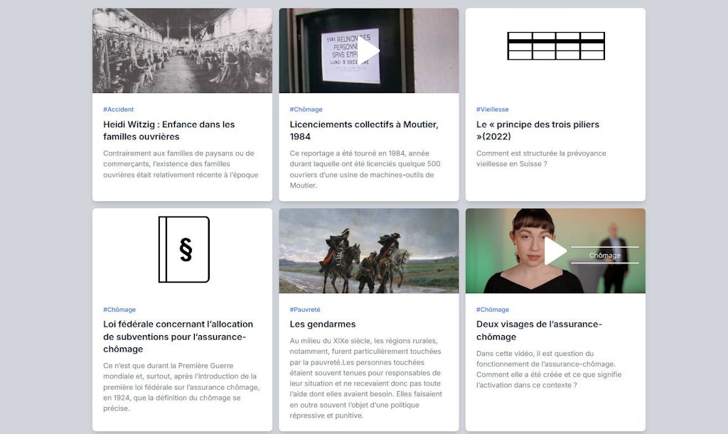 Le « Lab. Histoire de la sécurité sociale » est la première plateforme d’apprentissage en ligne sur la sécurité sociale. Elle s’adresse au corps enseignant du niveau secondaire II et propose des unités d’enseignement et des exercices de recherche, mais aussi un grand nombre d’outils didactiques sur les principaux risques sociaux. Gérée par un large partenariat d’acteurs, la plateforme reflète l’état actuel de la recherche portant sur l’État social.