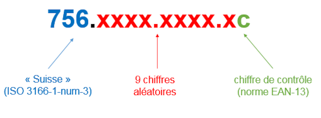 Le numéro AVS à treize chiffres est totalement anonyme et généré de manière aléatoire. Il ne permet pas d’établir un lien avec des informations relatives à la personne à laquelle il est attribué (nom, prénom, date de naissance, etc.). Il est attribué une seule fois et reste valable tout au long de la vie, même en cas de changement d’état civil, en raison d’un mariage par exemple.