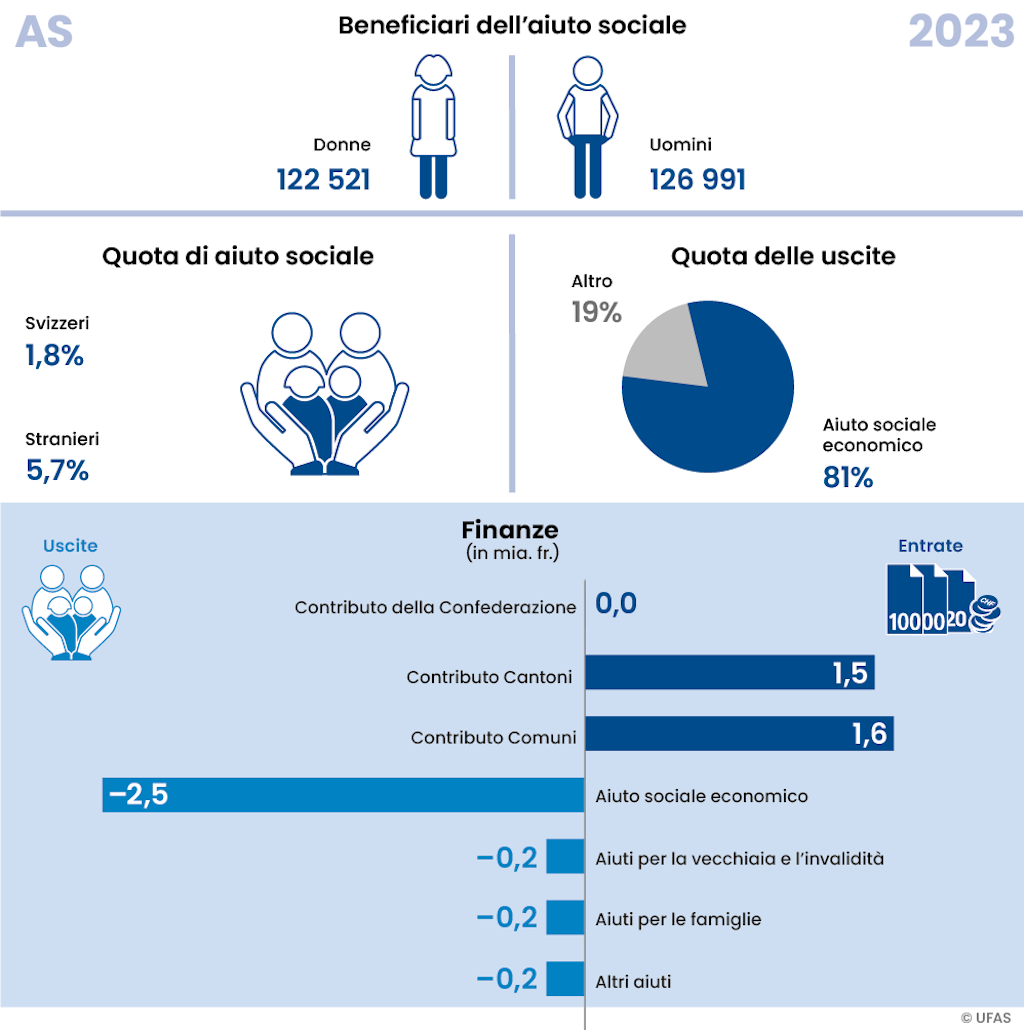 Per questo settore l’UFAS non pubblica statistiche dettagliate, le quali vengono allestite dall’Ufficio federale di statistica (UST). Le principali tabelle riassuntive figurano nella Schweizerische Sozialversicherungsstatistik (Statistica delle assicurazioni sociali svizzere [d/f]) dell’UFAS.